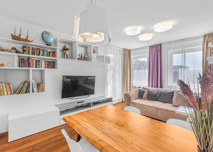 The spacious 77 m² New Large Apartment, Free Parking! Prague is situated in an old part of Prague, nearly a 15-minute drive from the Gothic Powder Tower. Only 650 metres from Střížkov tube station, the 1-bedroom apartment is within a 6-km distance of the Tipsport Arena.